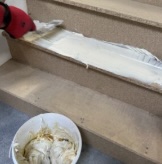 Ein Gebinde Treppenkleber 3 kg und ein Gebinde Härter 0,5 kg ist ausreichend für ca. 3-4 Stufen, er gleicht Unebenheiten bis zu 4 cm aus und ist schalldämmend. Die Verarbeitungszeit beträgt ca. 1 Stunde. Die Stufen können sofort begangen werden. Nach ca. 4 Stunden verrutschen die Stufen nicht mehr.